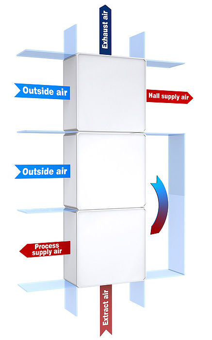 Cross-flow plate heat exchangers can be combined into various configurations to suit particular requirements.Two heat exchanger packages can be interconnected in cross-Counterflow to boost efficiency.